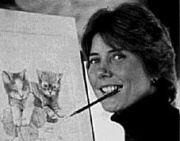 她烦躁痛苦的心安静了下来。这时,康复中心来了一个老师,教Joni和其他残废的病友用嘴叼笔写字。老师和好友从Joni信手画的线条中发现她具有绘画的天分。在他们的鼓励下,Joni开始学习用嘴画画。开始时,她用钢笔和铅笔画,后来开始用色彩。经过刻苦,耐心的训练,终于,一幅一幅美丽的画从她嘴边诞生,不论是玩线团的小猫咪,飞奔的骏马,展翅翱翔的雄鹰,还是林中深处的水泉,都显得栩栩如生,又另人深思,回味无穷。